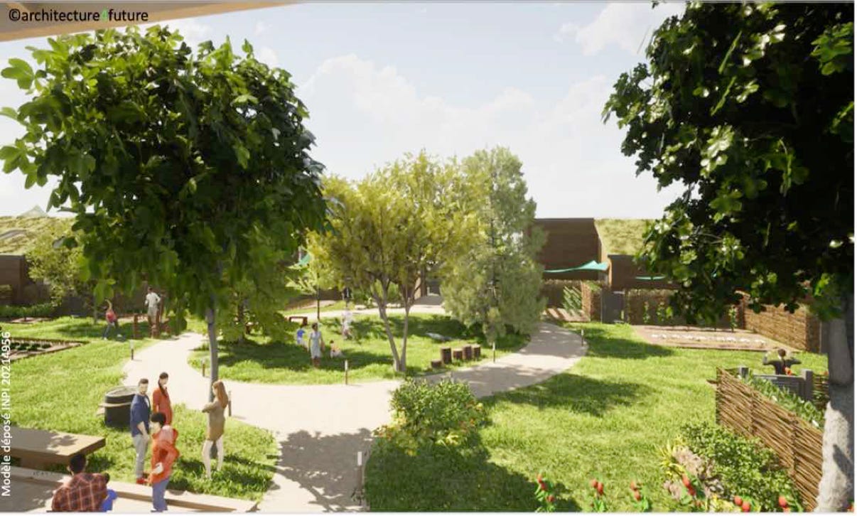 Environ 80 % du terrain est restituée à la nature, notamment sous forme de toitures végétalisées, jardins privatifs ou potagers familiaux, ces derniers gérés comme la serre horticole et l’espace d’accueil avec un petit espace «tiers lieu» par une association locale et ouverte au quartier qui s’appuiera sur des statuts pour un vivre-ensemble, élaborés par nos soins. Une agilité innovante des maisons a également été programmé, qui peuvent évoluer dans le temps à l’intérieur de leur volume passant d’un T2bis au T4. L’inspiration TinyHouse ne passe pas par la réduction des surfaces mais s’inscrit dans une logique d’optimisation de celles-ci tout en proposant des logements abordables. Et puisque nous savons que pour être bien avec les autres, il faut d’abord être bien chez soi, nous avons soigné avec la plus grande vigilance l’intimité dans les habitations et les jardins privatifs.